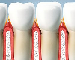 Periodontal disease bacteria like to hide deep within the tiny spaces between your teeth and gums, and these pockets are very difficult to clean with just scaling and root planing alone. So, we can apply a topical antibiotic to the gums called Arestin. It quickly dries, and then it slowly dissolves over the course of a few days, allowing a powerful antimicrobial medicine to seep below the gum line and kill any remaining bacteria.